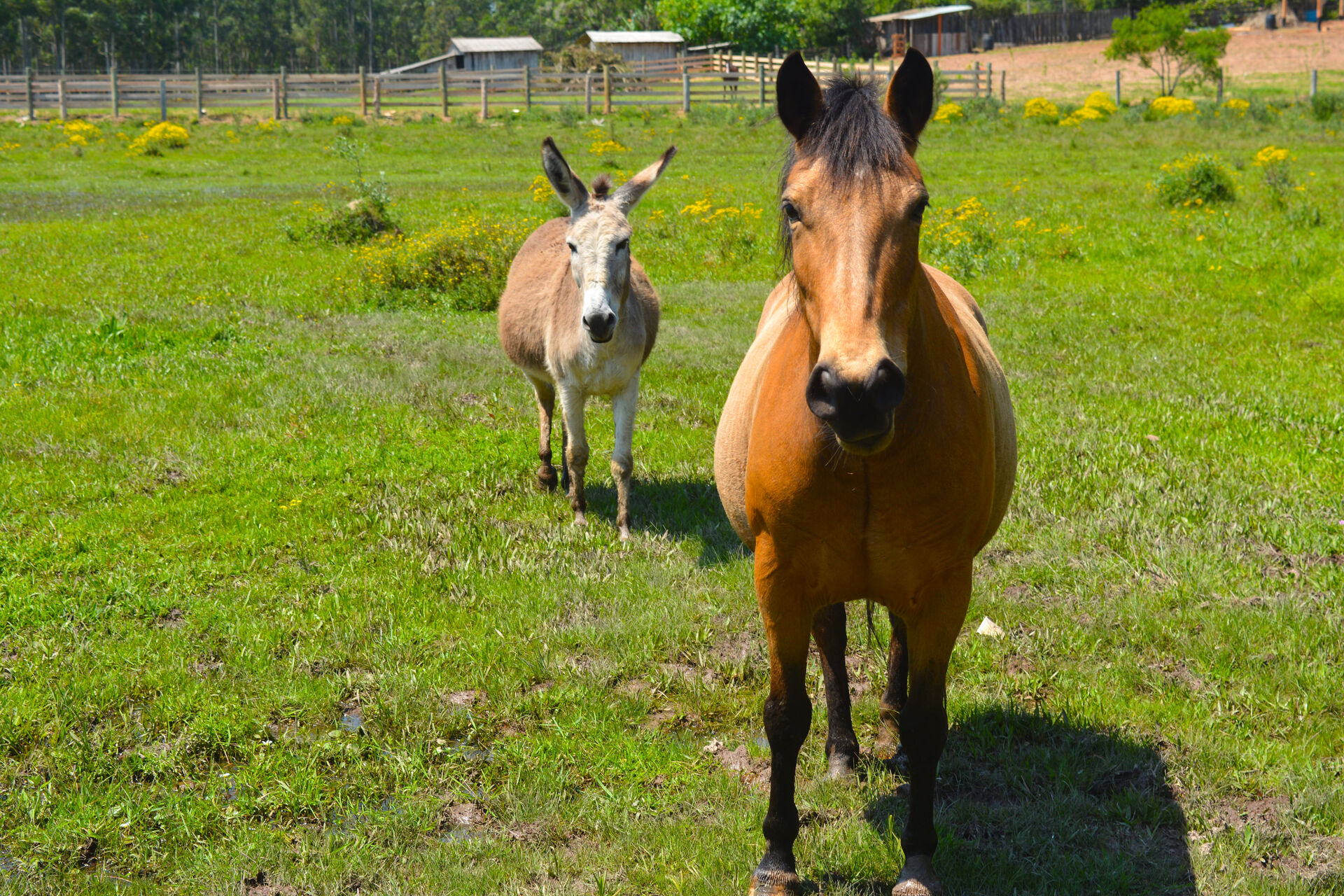 Puxar carroça. Esse era o destino do nosso querido Baio. O conhecemos ainda filhote, quando ainda era uma “propriedade” de um dos vizinhos do santuário. Pelo contato visual na cerca fomos nos afeiçoando a ele, mas recebemos a notícia que seu destino era ser castrado no facão para ser domado e servir a uma vida de trabalhos forçados. Saber de seu destino foi nos gerando um grande desconforto que, com o passar do tempo, se tornou insuportável.