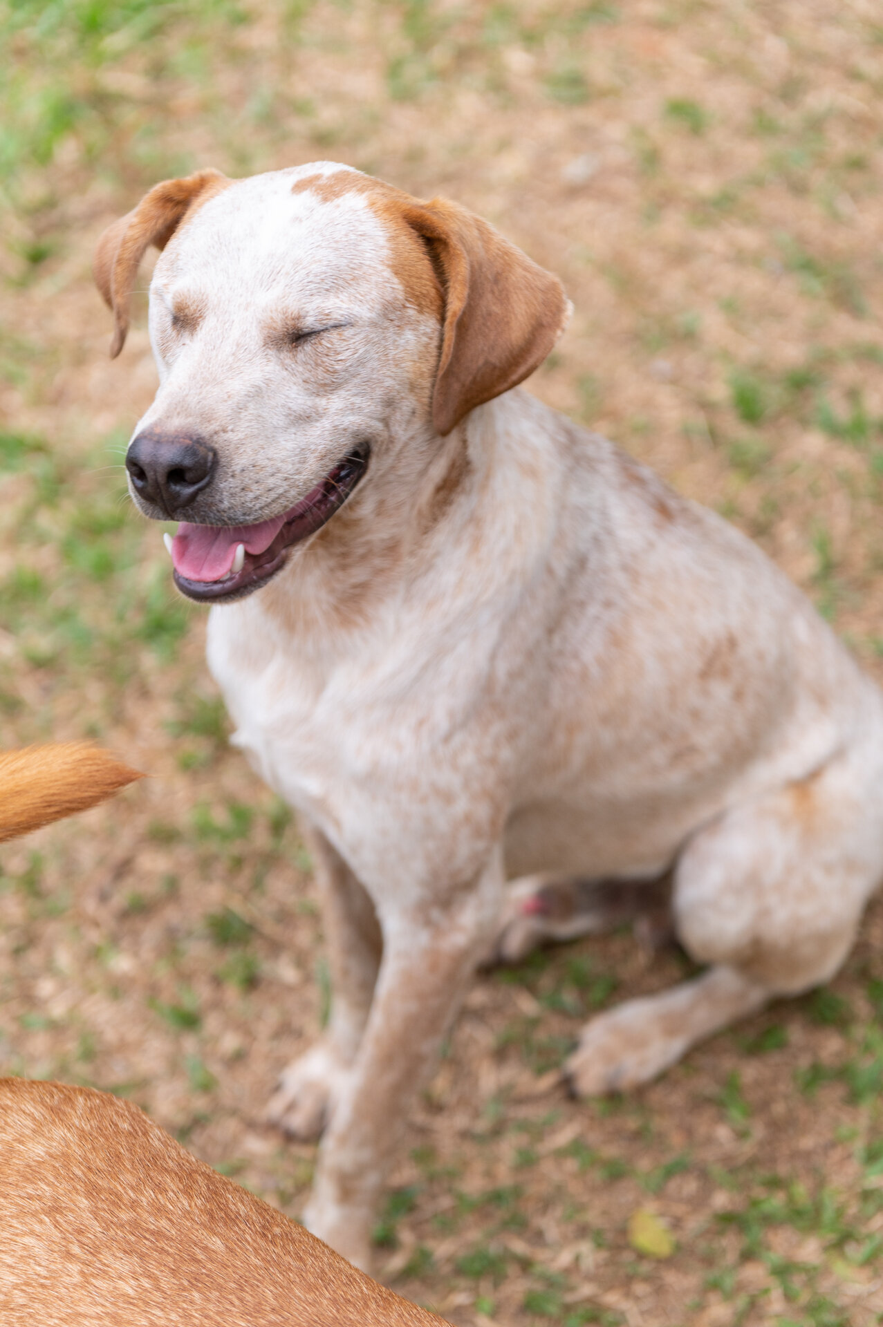 Fala, pessoal! Eu sou o Bento. Tenho 5 anos e porte médio. Minha pelagem é uma mistura de branco com manchas caramelo. Uma graça!