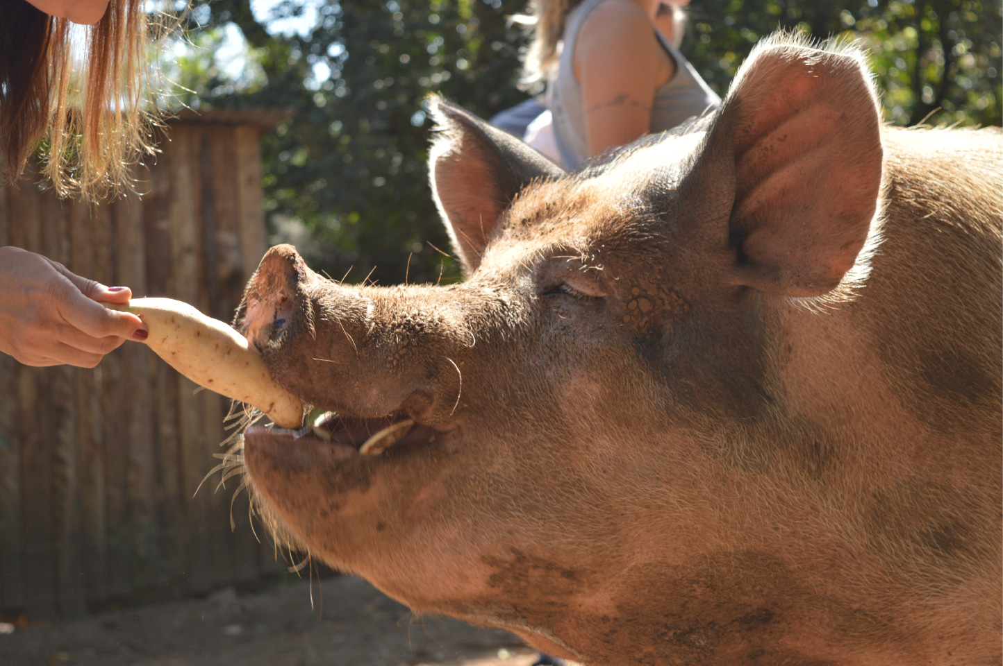 Após o resgate, os ativistas procuraram por algum local seguro para que pudessem abrigar os porcos, e felizmente chegaram até a gente.