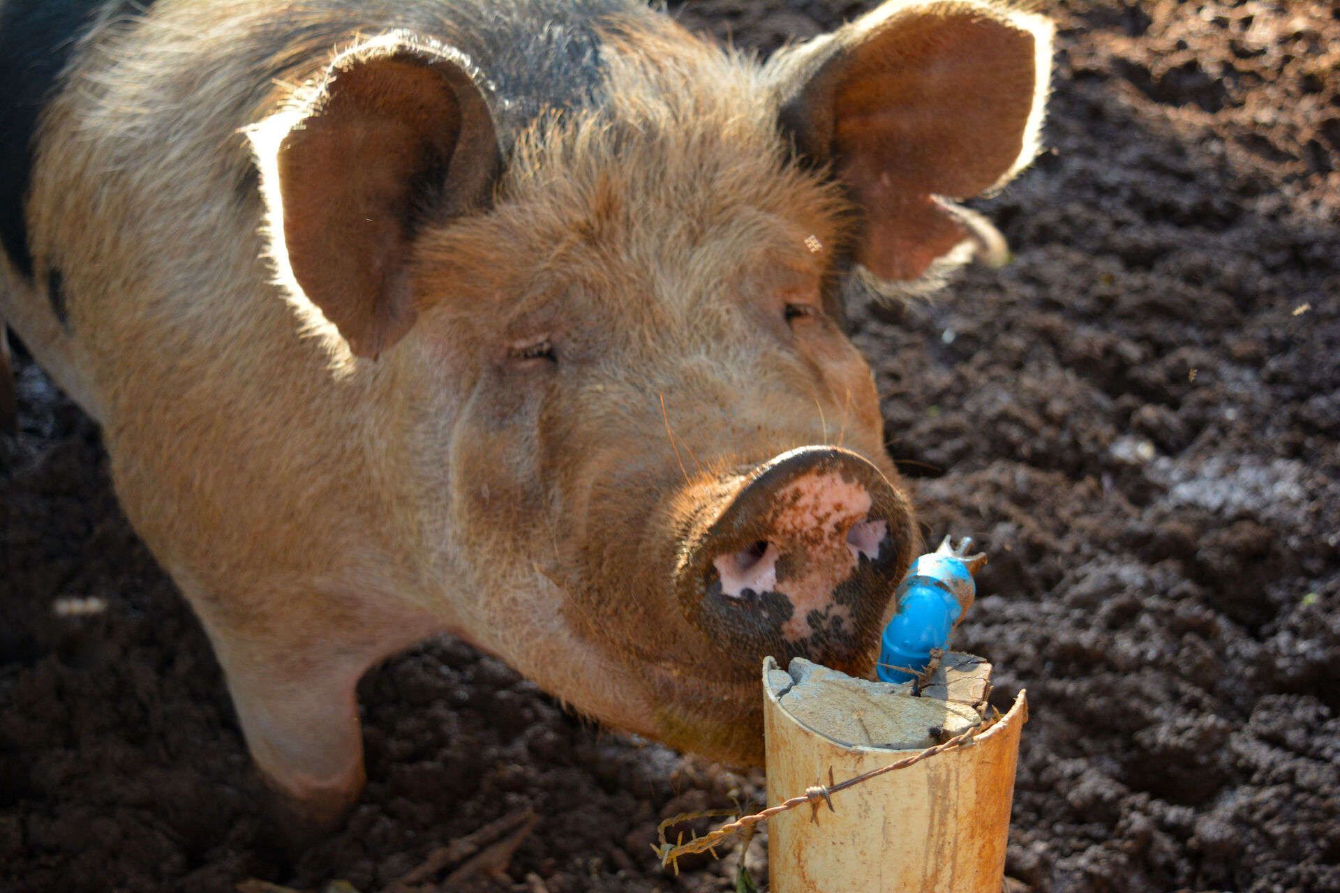 Os porquinhos que cabiam no porta-malas de um carro, hoje não entram mais na porta. Principalmente o Jujuba, que hoje chega a quase meia tonelada de fofura.