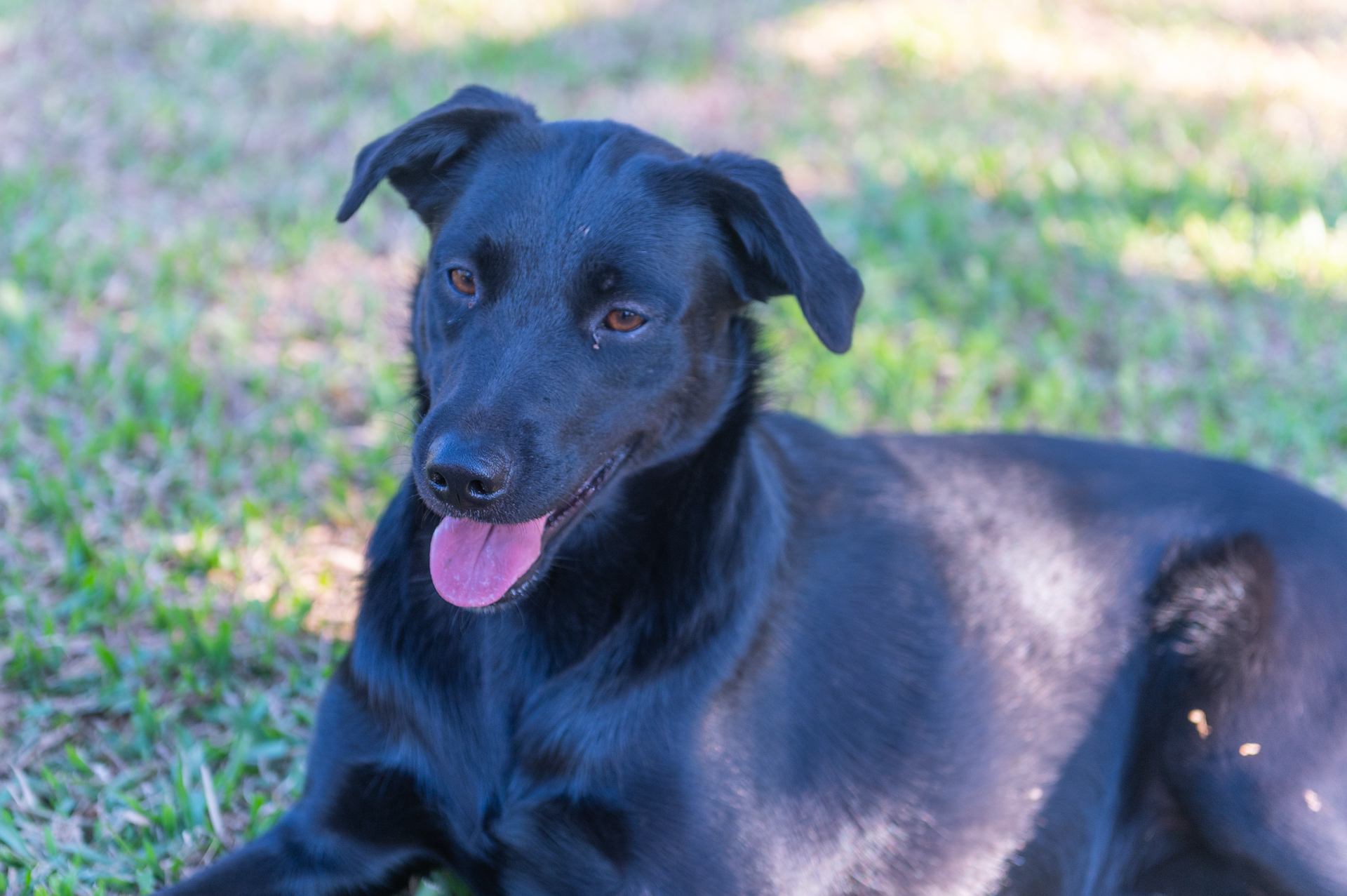 Meu pelo é praticamente todo preto. Sou muito fofa, dócil e sapeca. Adoro correr, pular e brincar com humanos e com outros cães.