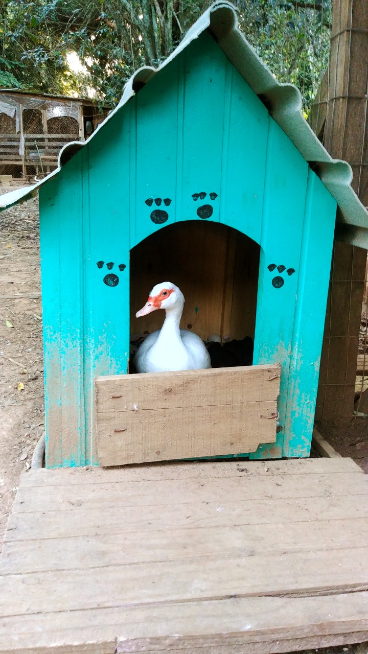 Essa fofura chamada Margarida é uma patinha muito meiga que está sempre rodeando quem entra na área das aves. Curiosa, acompanha todos os nossos passos quando vamos alimentar as galinhas ou fazer algum conserto no seu espaço, ávida por fazer contato e se mostrar presente.