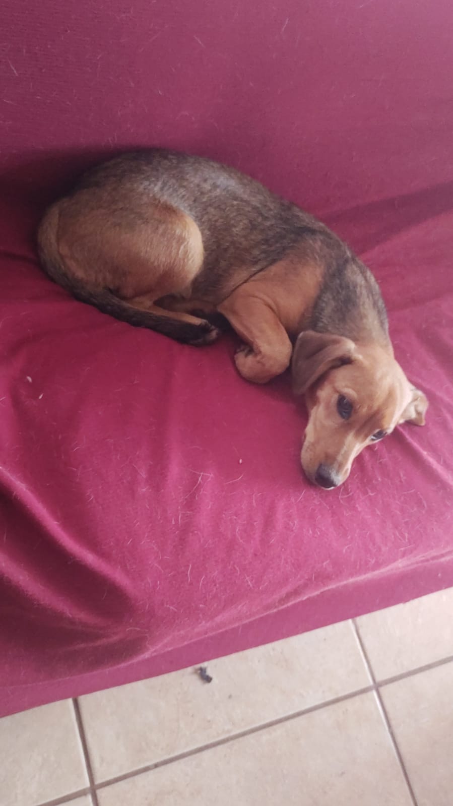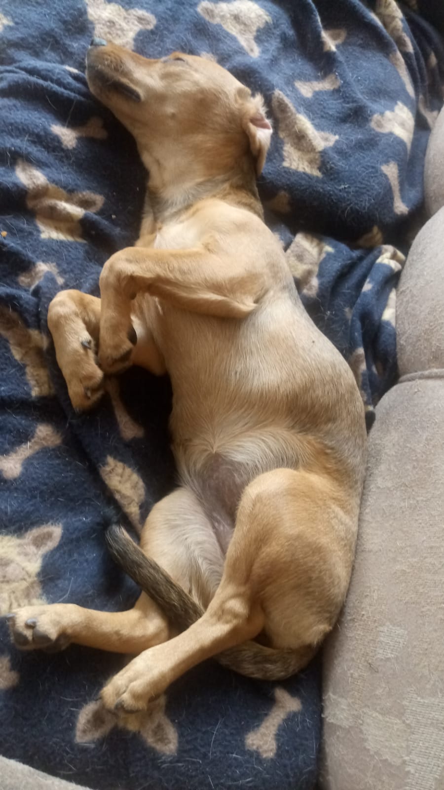 Fui resgatada pelo Santuário junto com os meus seis irmãozinhos. O nosso antigo tutor não tinha condições de cuidar da gente. A minha mãezinha foi castrada e os meus maninhos adotados. Eu sou a única da ninhada que sigo a espera de uma família.